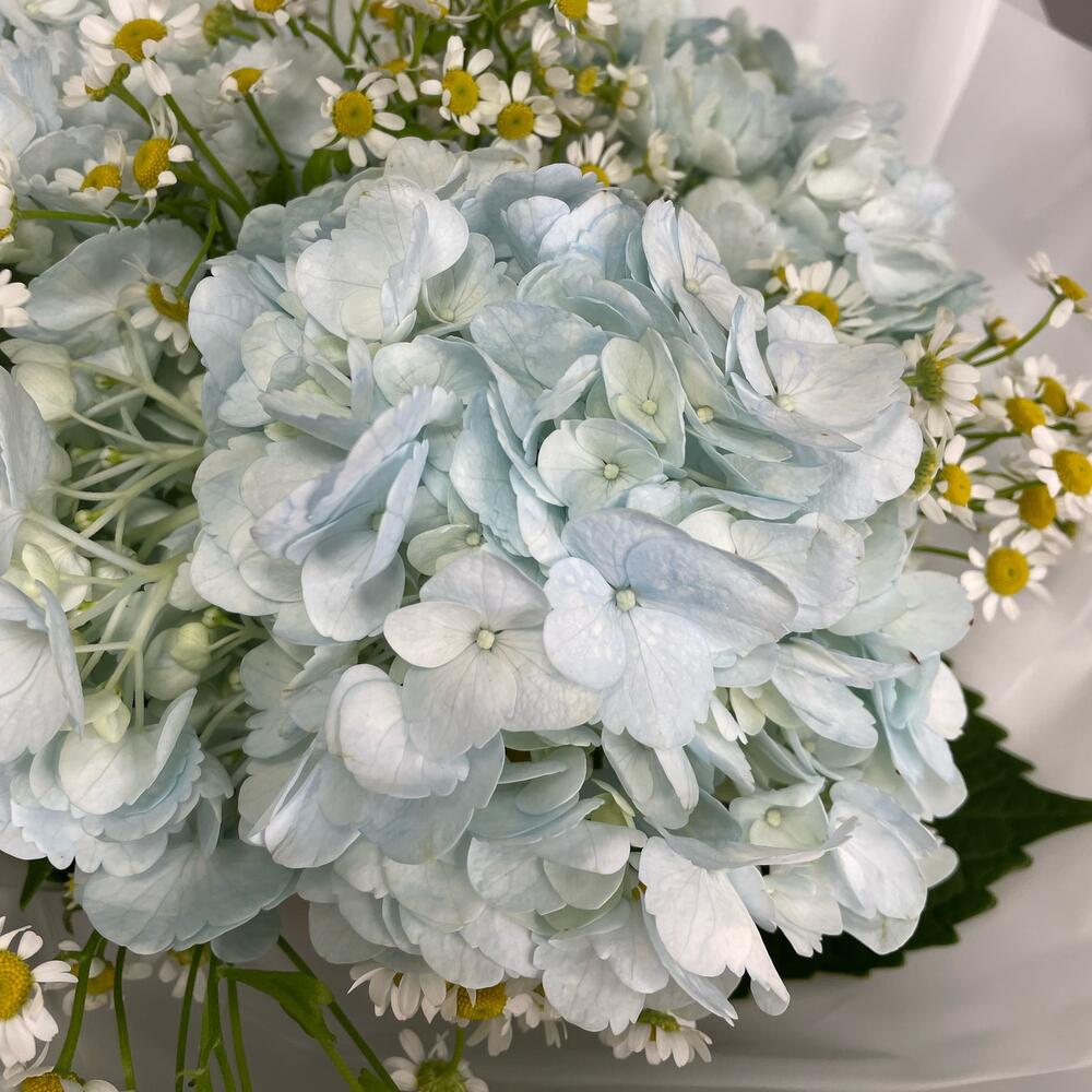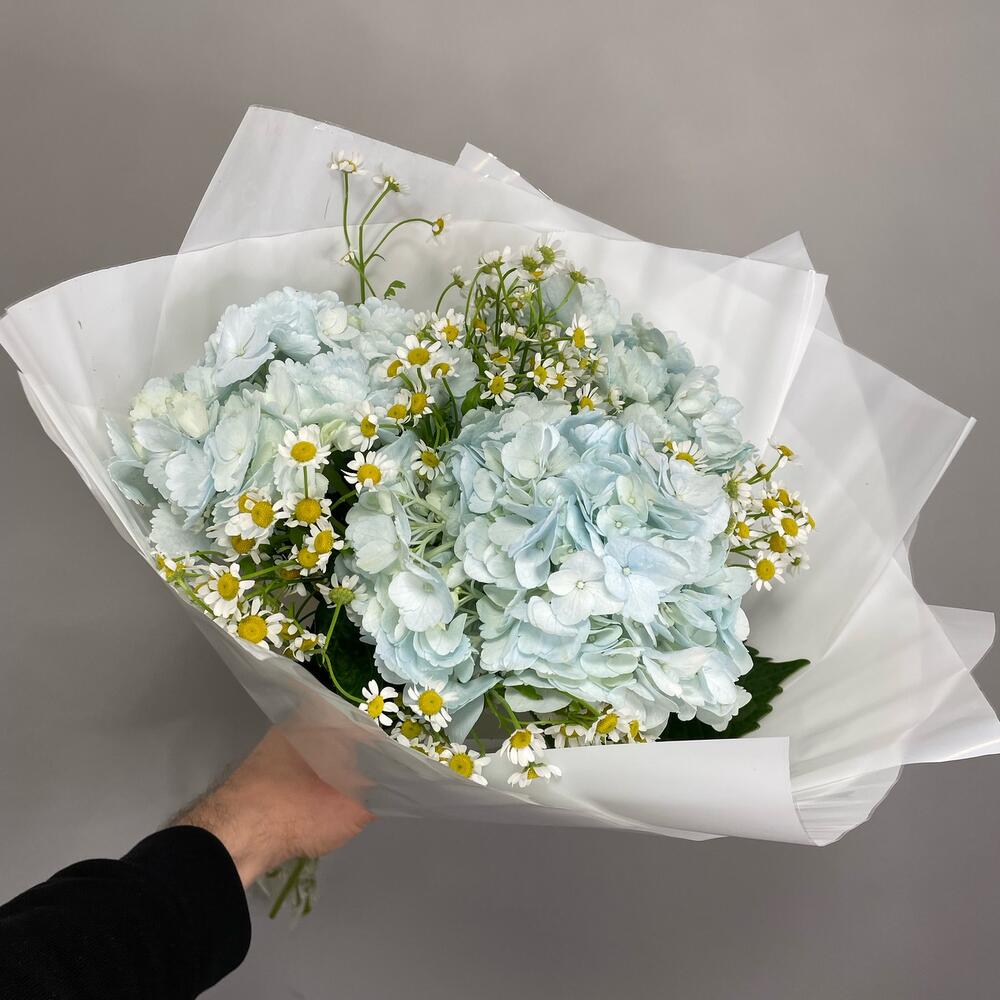 Букет из ромашек и нежных гортензий микс