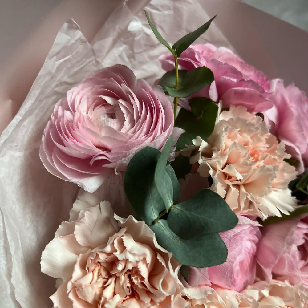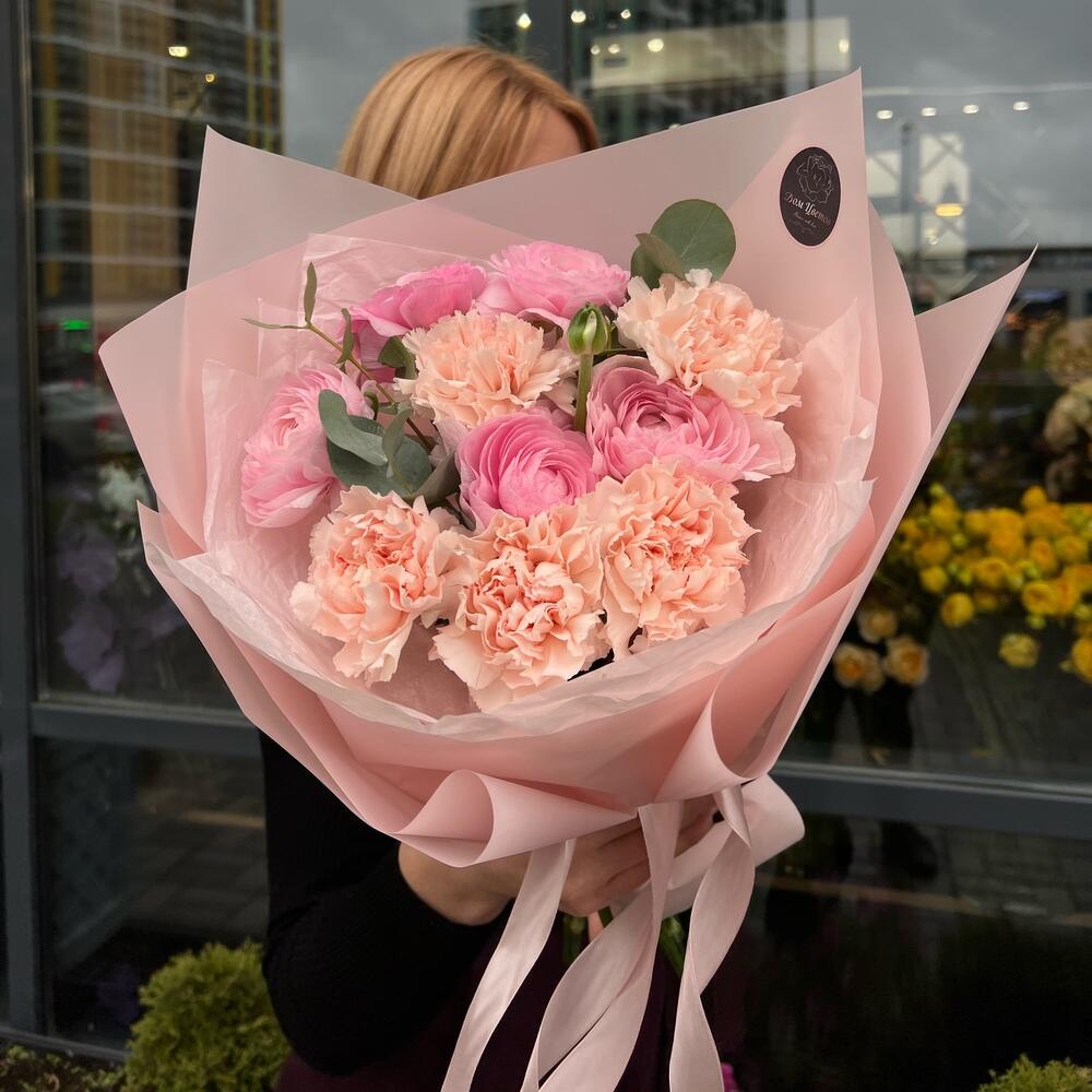 Букет из ранункулюсов и диантусов