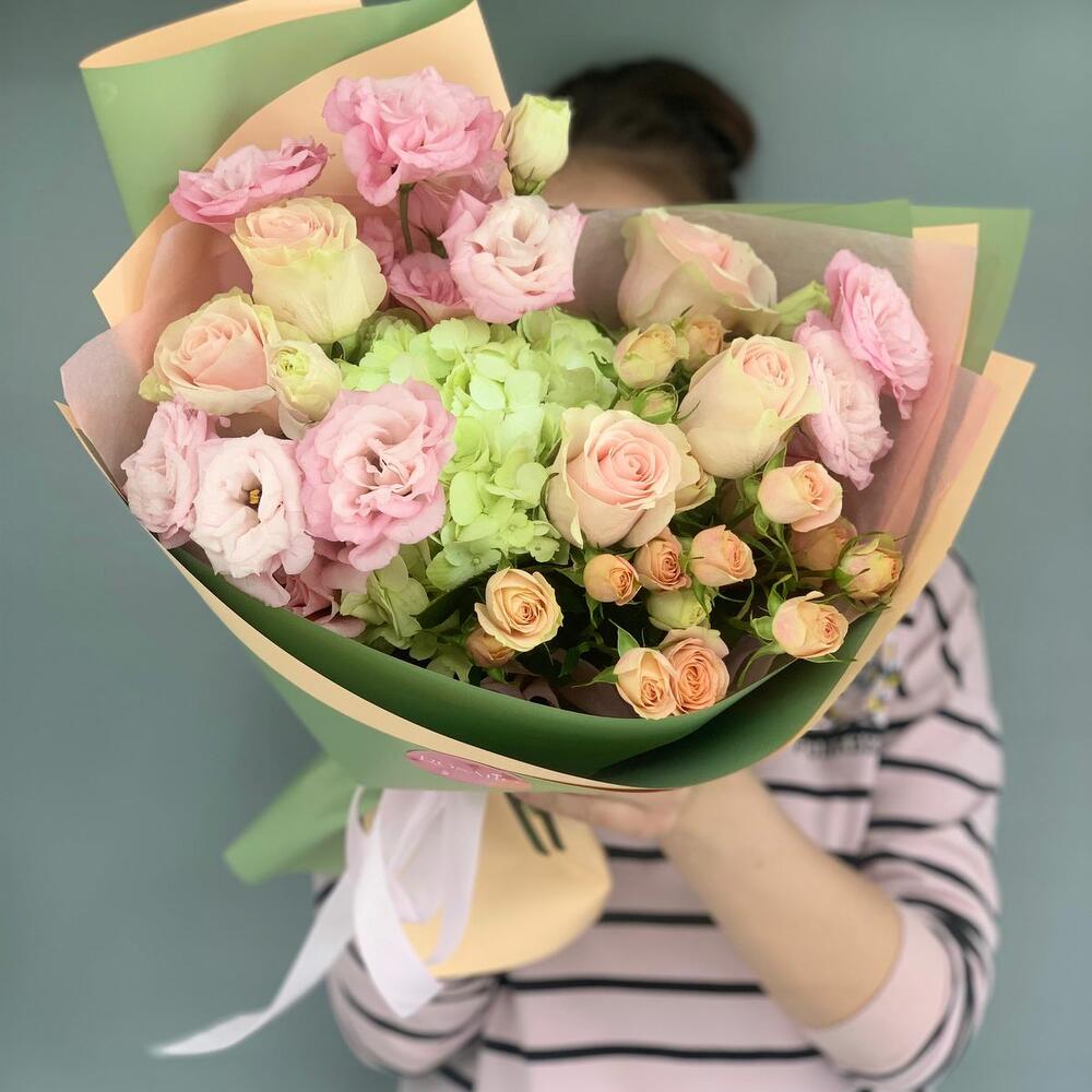 Гвоздики, Кустовые розы, Лизиантусы, Пионовидные розы, Розы