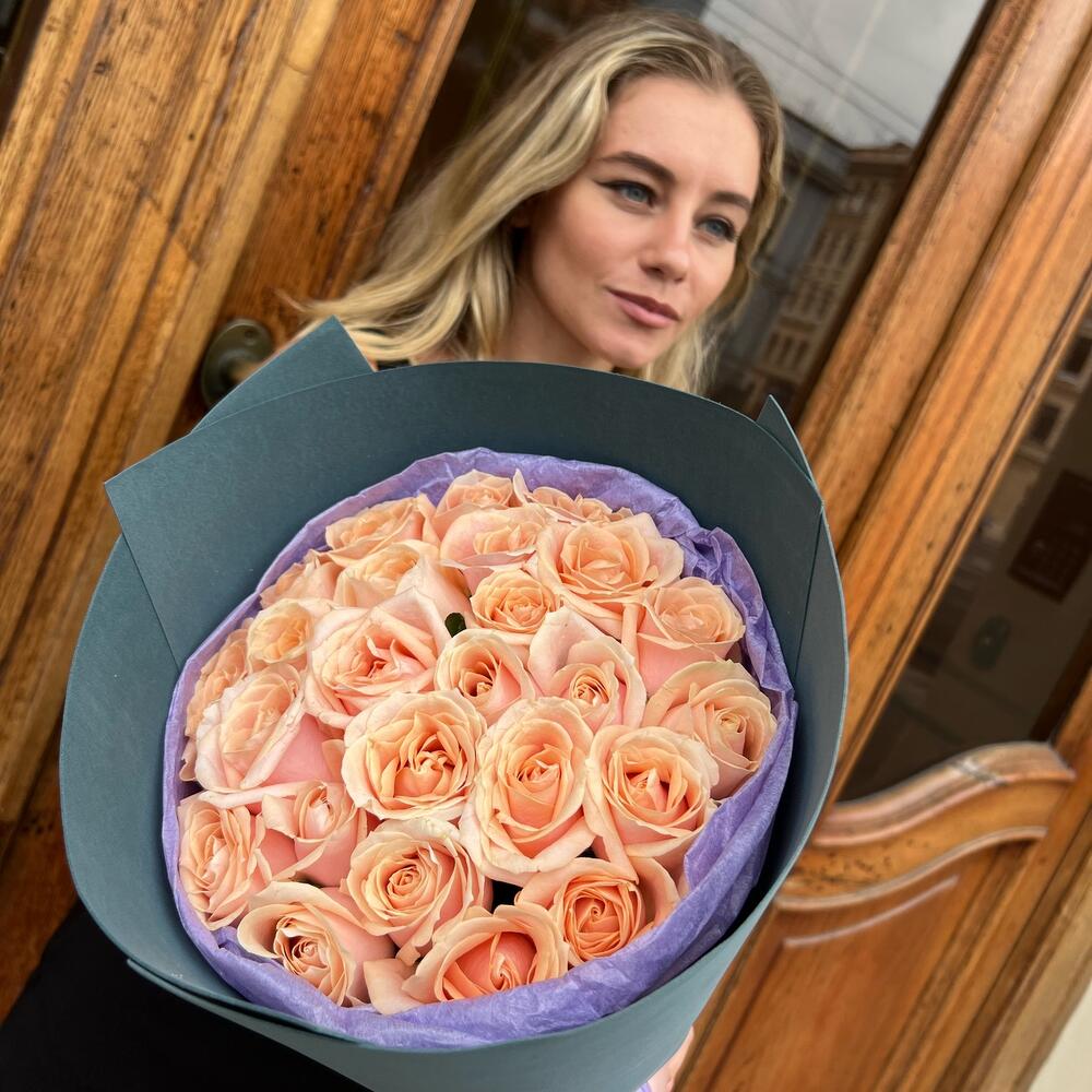 25 персиковых Роз 60см в упаковке «Бокал»