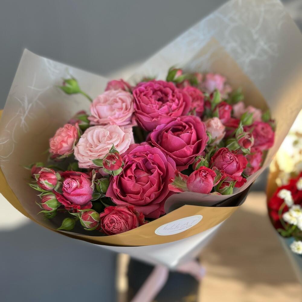 Альстромерии, Кустовые розы, Лизиантусы, Пионовидные розы, Розы, Ромашки