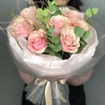 Букет роз « Пинк мондиаль» и эвкалипта