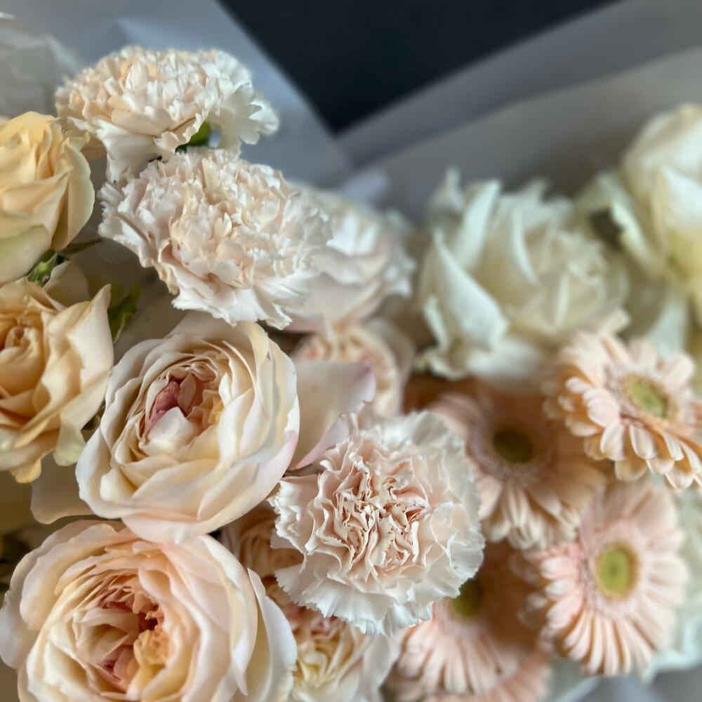 Категорий: Гвоздики, Герберы, Кустовые розы, Пионовидные розы, Розы
