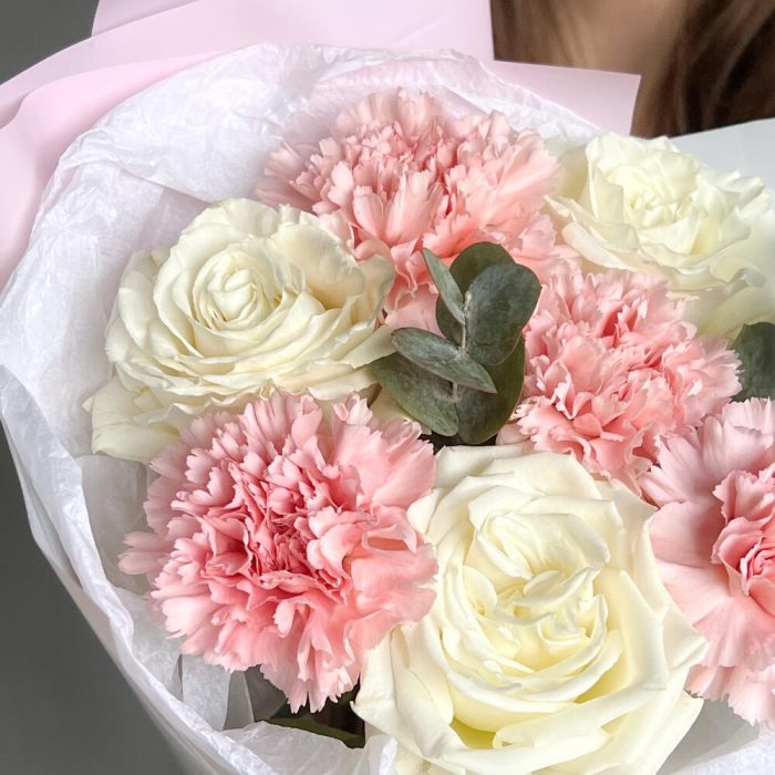 Диантус – 4 шт.эвкалипт cineria – 2 шт.роза playa blanca премиум – 3 шт.